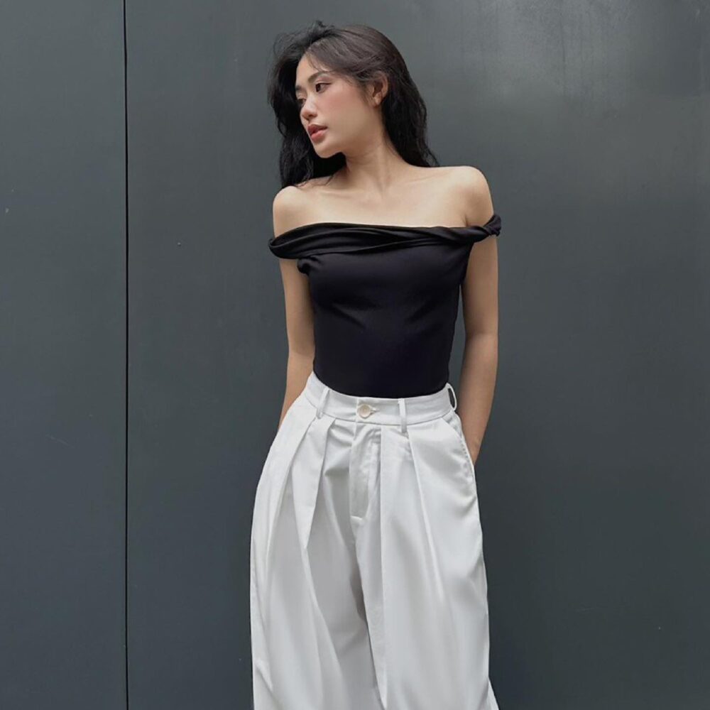 Off-Shoulder Black Fitted Top – Elegant Minimal Streetwear