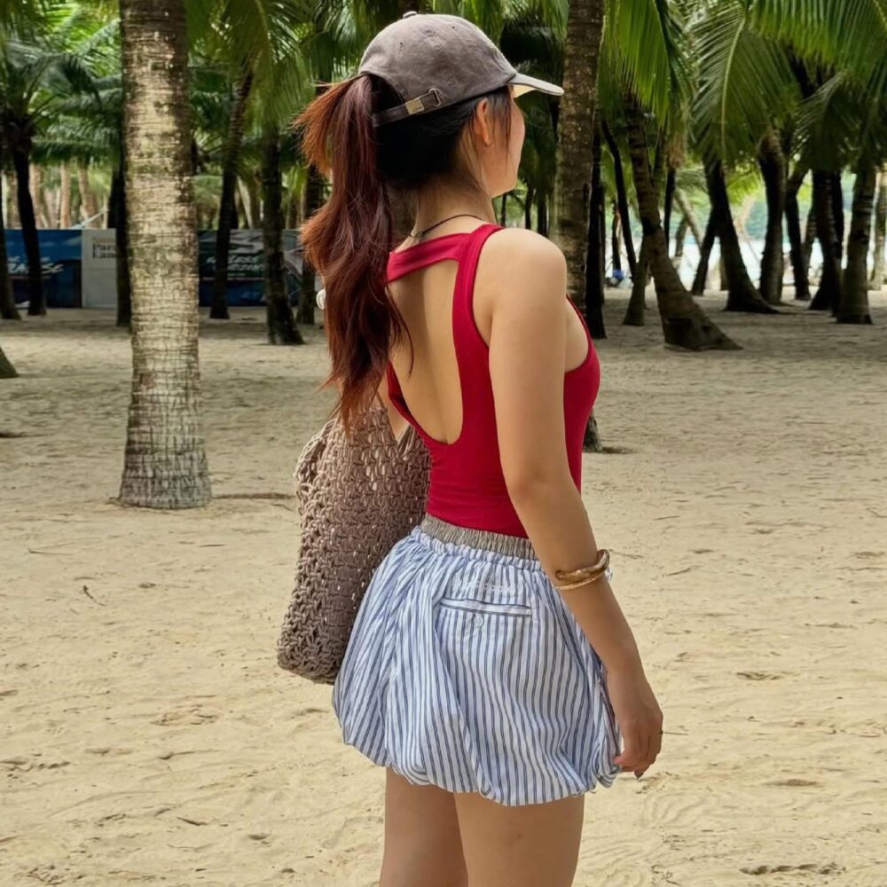 Red Ribbed Tank Bodysuit – Open Back Minimalist Summer Top