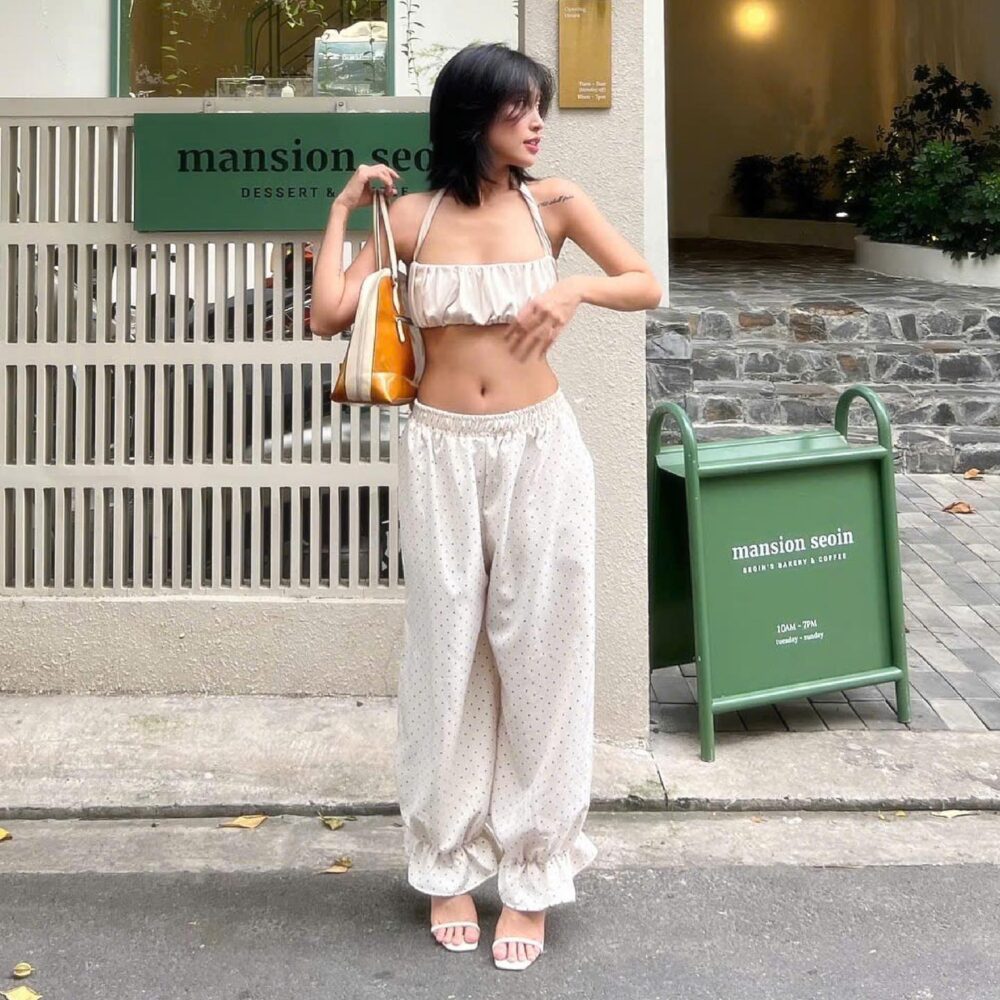 Polka Dot Halter Crop Top & Ruffle Hem Pants Set – Effortless Summer Streetwear